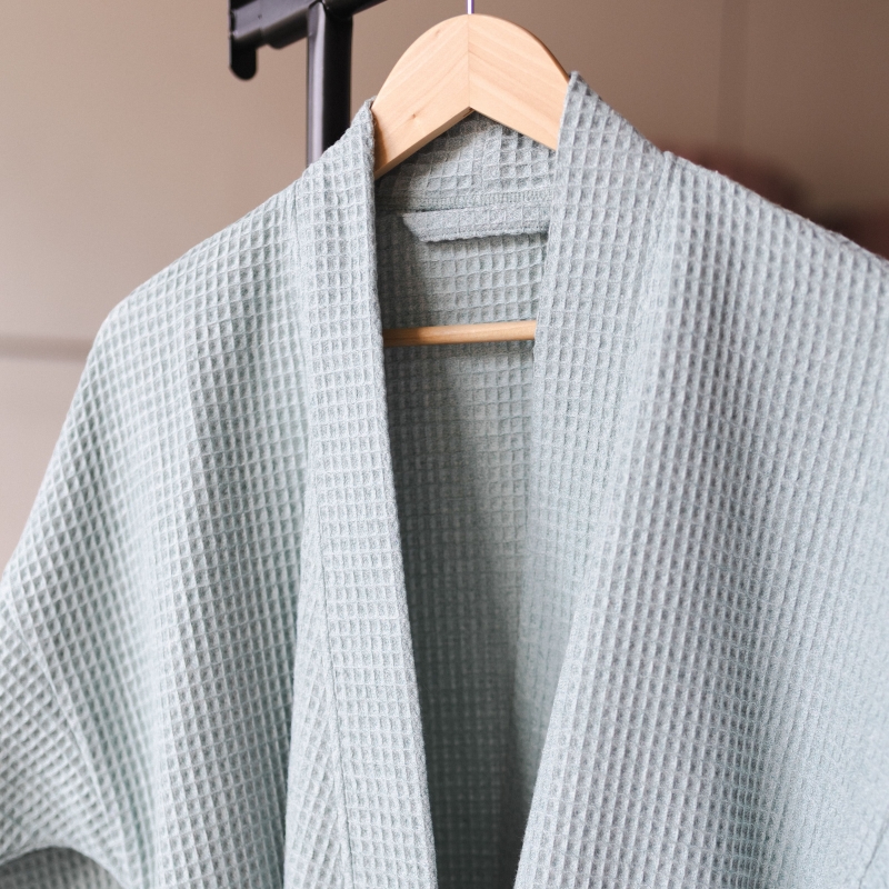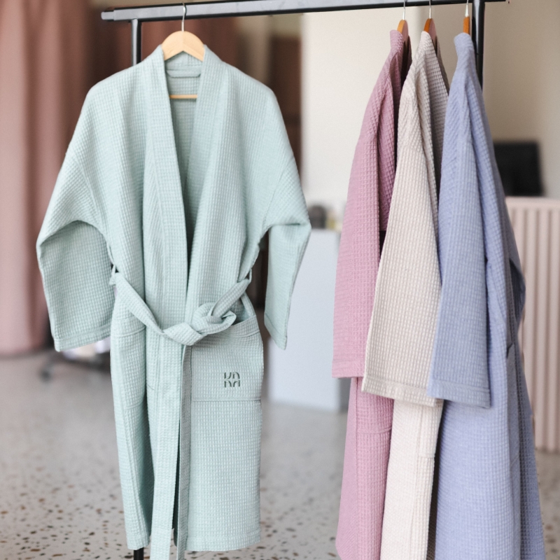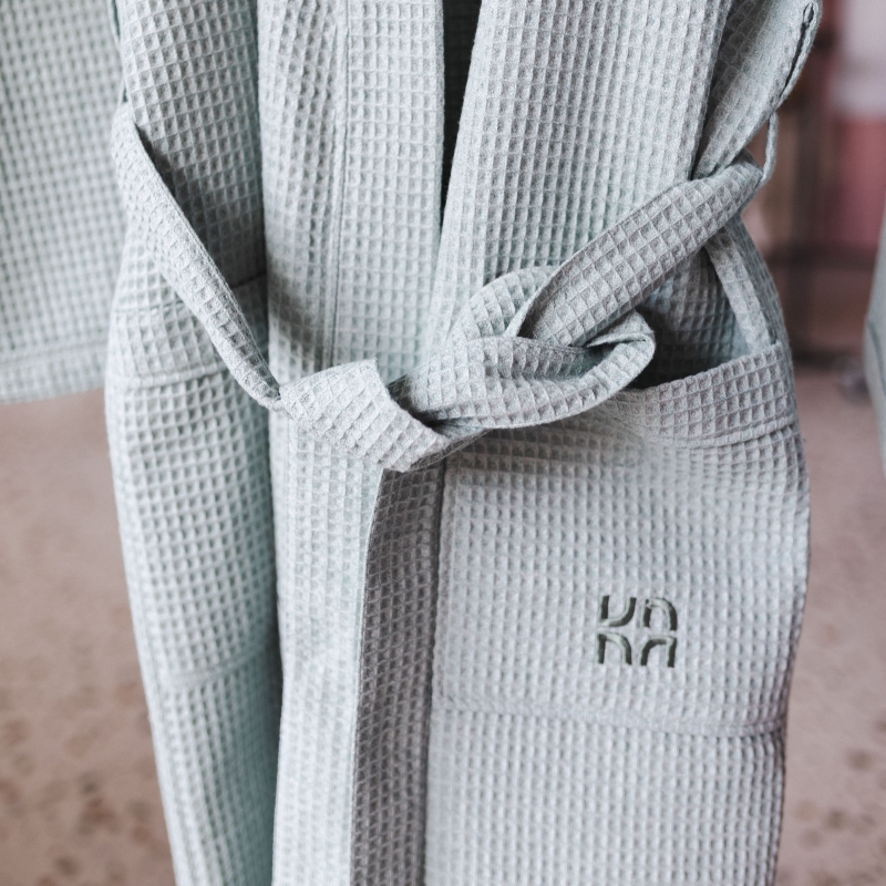 Халатът от колекцията RE:NEW се отличава с дишаща материя, мекота и естествен външен вид. Лек, удобен и идеален за ежедневно носене – независимо дали след душ или по време на бавно утро с кафе. Минималистичният дизайн и чистите линии отразяват философията на вътрешната трансформация, която колекцията RE:NEW празнува.